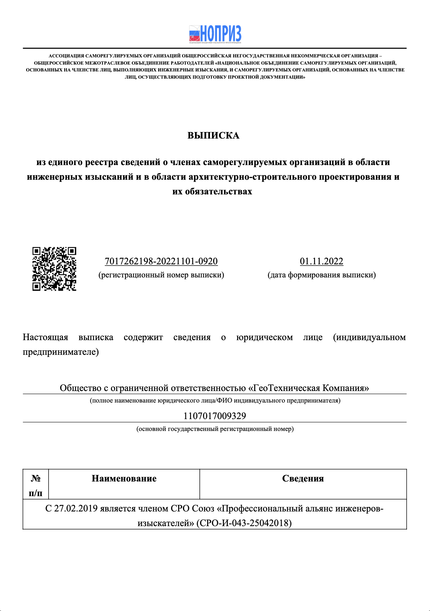 Выписка из единого реества сведений о членах саморегулируемых организаций в области инженерных изысканий и в области архитектрно-строительного проектирования и их обязательств